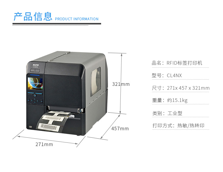 SATO CL4NX是SATO满足打印需求而设计的条码打印机。它具有如下特点: