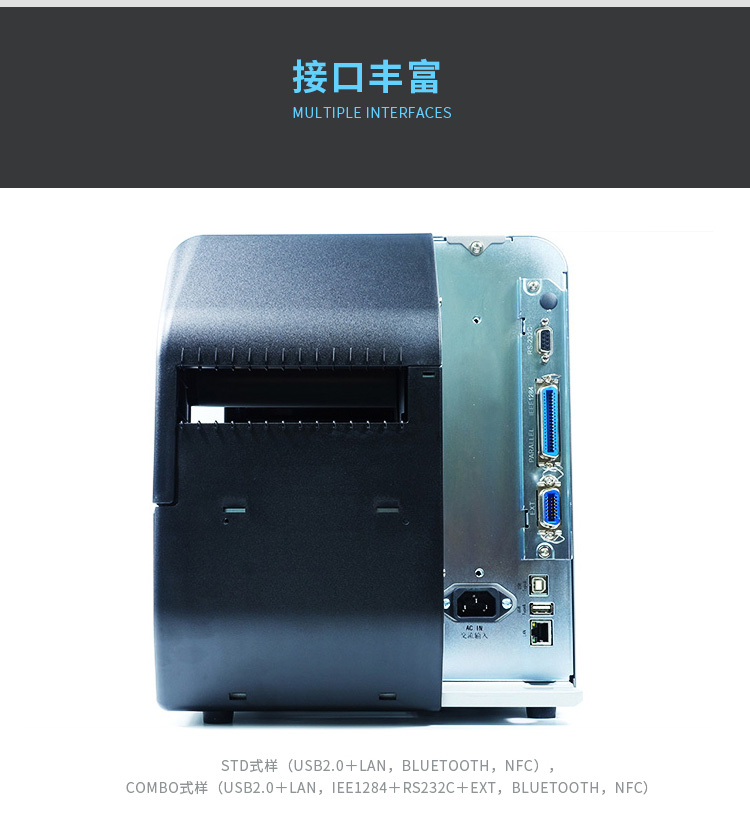 | 其它性能 | 打印模式:连续、撕纸、切刀、剥离 感应模式:间隙感应(穿透模式)、黑标感应(反射模式)、纸张用尽、碳带用尽、碳带即将用??; LED指示器:蓝/红色 警报声音:蜂鸣声(3级音量) 自检功能:打印头、切刀开启,待机,自动检测 显示屏:TFT全彩LCD,3.5"(320x240) 多语言支持:内置47种打印语言,30种LCD显示语言 操作视频预置:18个视频(耗材安装,部件更换,清扫,设置RFID天线) 远程协议:SNMP ver3,HTTPs 构造:铝压铸(底部,框架,前盖,碳带轴,打印头装置) 机身侧盖:省空间双折叠式,含大视窗 底盘安装:3孔固定,可平面或倾斜安装 |